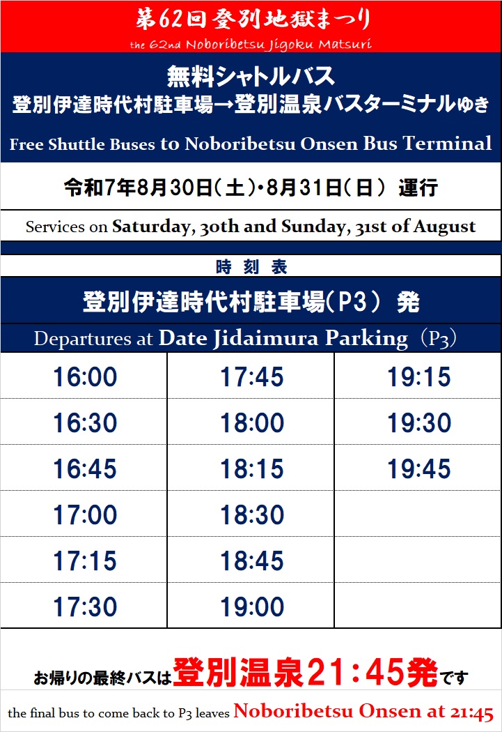 第3駐車場(登別伊達時代村)⇔ 登別温泉バスターミナル 送迎バスのご案内